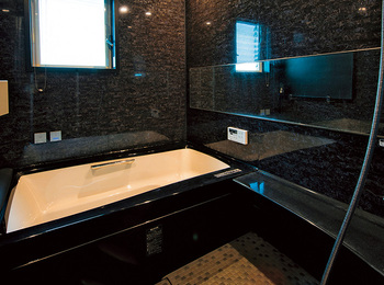 居室は自然素材を用いて快適な空間に。トイレには、奥の壁に調湿・消臭効果のあるエコカラットをあしらい、クロスは遊び心のある大胆な柄をチョイス。配管やコンセントはほこりが付かないようカバーで覆った。