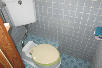 和式だったトイレは場所を変えて様式に。ホテルライクなインテリアを持つ居住空間に合わせて、壁には個性的なゼブラ柄の毛皮のように見えるクロスを全面にあしらい、スタイリッシュな空間に仕上げた。