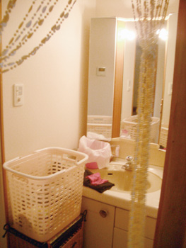 洗面室とアコーディオンカーテンで仕切れる家事室