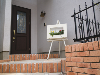 | 築20年を経て傷みが気になっていたマイホームを全面的にリフォームしたY様。イメージ通りに生まれ変わった家を見て、「せっかく家の中が綺麗になったのだから、外回りの部分も新しくしたい」と感じたよう。 お客様を家へと迎える門扉から玄関アプローチ、フェンスなどの外構も思い切って改装。 デザインは家の雰囲気に合わせて女性コーディネーターが考案し、パースを作成した。 程よい感じの古めかしさを帯びた西洋風のイメージで描かれたパースを見て、Y様は一目で気に入ったそう。 緑や花を絵画のようにあしらったウェルカムボードを思わせるオブジェは、この玄関アプローチに合わせてY様自らが購入したもの。 門構えや玄関アプローチにはアンティーク調のレンガを配し、まるで中世ヨーロッパを思わせる物のフェンスや門扉で統一感を醸し出している。それらと雰囲気をおなじくした玄関ドアは、木目の質感を持ちながら実は手入れが簡単なアルミ製。 風雨にさらされることを考えれば、上質の雰囲気と掃除のしやすさを併せ持っていることは大きなポイントといえそう。 この雰囲気をさらに引き立てようと、コーディネーターは玄関まわりの植栽までトータルで提案。山ぼうしの木や色とりどりに咲くパンジーの花など、四季折々にみんなの目を楽しませてくれる美しい玄関まわりの実現に成功した。 女性ならではの感覚が生きた外構工事の好例だ。 |