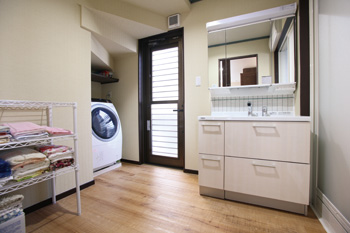 | 洗面 脱衣所の床も居室に合わせて木目のシートに |