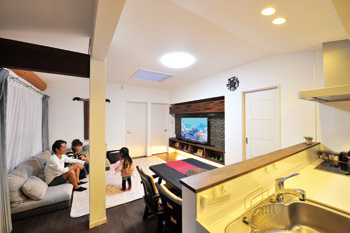 家族3人がくつろげる暖かく心地良いLDKが誕生。シンプルな生活動線も魅力。