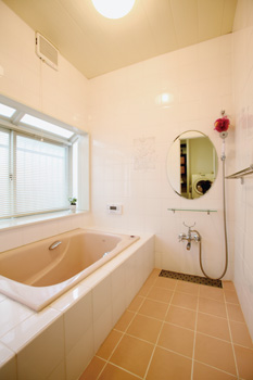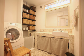 | 洗面所の大きな鏡は、奥さまがご家族の髪を切るために設置 | ローラ・アシュレイの壁紙が目を引く和室 |