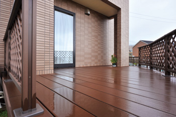 | ベランダだった部分は樹脂製のウッドデッキに | 余裕で車2台分が停められるのも魅力的なEさん邸 |