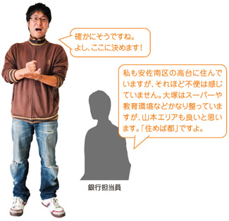 これまでの家賃は駐車場を含めて7万4000円。返済額は、返済金利が0.875%だとボーナスなしで月々6万3590円と、従来の家賃並みに収まることが分かり、無事に契約完了。