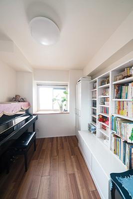 ものが多かったサービスルームは収納家具を設置。床は猫が滑らないフローリングに張り替え。