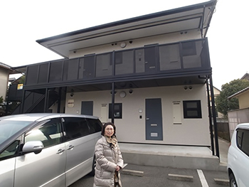 賃貸物件なので8部屋それぞれにお住まいの方がおられ、工事中は多々ご不便、ご迷惑をお掛けしたのですが、事前にご挨拶にお伺いさせていただき、住人の皆様のご協力があって、無事工事を終える事ができました。ありがとうございました。