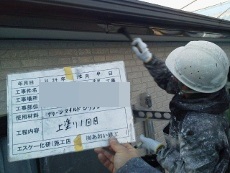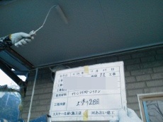 軒裏天井の塗装です。二階軒天の下吹きです。