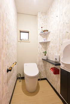 | さらに、前回のリフォーム後に「いずれ変えたい」と考えていた水まわりのリフォームが、2ヵ月前に終わったばかりとのこと。洗面脱衣室は壁と天井のクロス、床を貼り替え、一新した浴室は開き戸から引き戸に変更。将来、不測の事態が起きたとき、内側からしかドアが開けられないということにならないための対策だ。トイレは浴室側にやや広さを増し、ゆとりをもたせた。「残っていた不満もすっかり解消でき、帰省してくる娘たちも喜ぶと思います」とSさん。2度目のリフォームで、何の不満もなく快適で使い勝手の良い家を叶えることができたようだ。 |