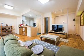 19年間住んでいたマンションが、水回りを中心に経年劣化してきたのをきっかけにそれまで気になっていた部分もあわせて解決したいと、全面リフォームすることに。「近所にあったマエダハウジングさんに頼もうと思いながら19年が過ぎ、その間にすっかり大きい会社になっていて。おかげで安心して頼むことができました」と笑顔で語るお2人。