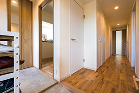 | 調湿作用のある漆喰のおかげか、冬も結露しにくくなった。リビングには午前中から日差しが入り温かく過ごせる | タイル張りの土間と収納を設け、以前の2倍の空間になった玄関。光と風が抜ける爽やかな空間に生まれ変わった |