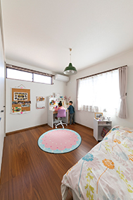 | 回遊できるキッチンは忙しい朝でも快適に作業できる | 2階にある上の娘さんの部屋は女の子らしい空間 |
