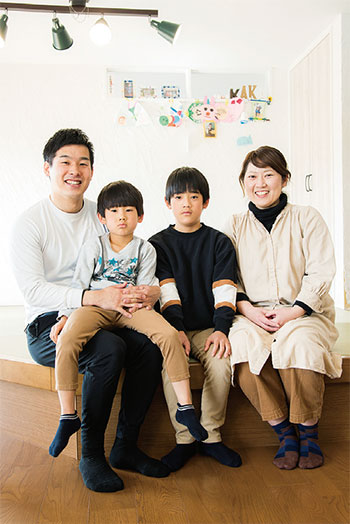 広島市 N様会社員のご主人と奥様、お2人のお子さんの4人家族。2016年の入居時には年中クラスと2歳だった兄弟も、今は小学3年生と年長クラスに成長。 |