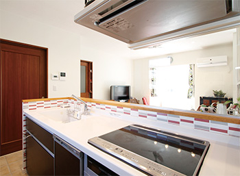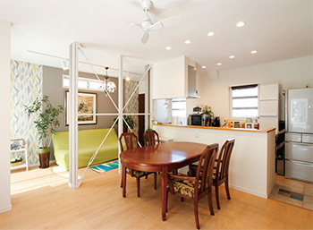 大手ハウスメーカーで建てた軽量鉄骨の自宅を、2年半前にLDKを中心に暮らしやすい空間にリフォームしたK様ご夫婦。 施工は、以前から水回りや外壁などの工事を都度お願いしており、その対応の良さと担当者や職人さんとも信頼関係を築けていることから、迷わずマエダハウジングに依頼。 この度のリフォームにおいて、奥様の1番の要望は、完全独立していたキッチンの壁を取り払ってLDKに取り込み、対面型にすること。さらに一部増築することで、広々としたLDK空間を確保することにした。 しかし、いざ工事が始まると、構造上取り除くことができない鉄柱と筋交いがあることが発覚。増築に関わる部分だったが、コーディネーターのアイデアでそれらを白く塗装することであしらいの一部のように見せることにして、希望通りの空間がかなった。 「今回のリフォームも狙い通りでした」とご主人。それに続き奥様も「広々としていいですね。孫たちが来てもLDKで走り回ってますし、この鉄柱と筋交いにぶら下がったりもして伸び伸びと遊んでいます。友達が遊びに来ても、リラックスできていいね~と言ってくれました」とご夫婦そろって大満足の様子だ。 また、増築部分一面の壁紙のデザインと色にこだわったのも、奥様の満足度UPのポイントの1つ。「コーディネーターの佐々木さんが提案してくれたときには『えー! これ貼って大丈夫!?』と言ったんです(笑)。でも、思い切って挑戦して大成功。今となってはもっとやれば良かったと思っています」。奥様はマエダハウジングが展開しているDIY・インテリアショップ「mam′e deco」にも足を運ばれているようで、「今度は『mam′e deco』でおしゃれな壁紙を購入して、自分で貼ってみようかと思っています」と楽しそうに教えてくれた。 機能性の向上も目に見える変化があったそうで、蓄熱暖房機を設置したことで「ずっと悩んでいた結露がなくなりました。ほっこりした暖かさも、石油ストーブとは全然違いますね」とご主人。 この大掛かりなリフォームの後にも実は、浴室暖房乾燥機を同社に依頼して設置したとか。K様ご夫婦のこれからも続くであろう住まいづくりが、今後も楽しみだ。