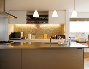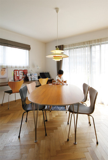 3年前、築40年のご主人の実家を二世帯住居に全面リフォームしたWさんご一家。息子さんご夫婦が住む2階を増築し、玄関を2つ並べて完全二世帯住居とし、各世帯のライフスタイルに配慮したリフォームを行った。 特に大きく変わった2階は、約25帖の広々としたLDKが印象的。奥様の要望で採用したアイランドキッチンは、作業スペスが広い上、息子さんが遊ぶ様子を見守りながら料理ができ、友人を招いて奥様の得意なパン作りを教えるときも、キッチンを囲んでできるのがうれしいとのこと。家を訪れた友人たちは「築40年の家がこんなにすてきになるの?」と、驚きの声を上げるという。トイレを含め、各空間は一面のみアクセントカラーに塗装し、それぞれに異なる雰囲気を醸し出しているのも特徴的。照明はスッキリしたデザインのものを選択し、スタイリッシュな印象だ。 また、自然素材を積極的に取り入れ、床はナラの無垢材、壁は珪藻土塗りに。子ども部屋と納戸の壁はご夫婦自ら塗装を担当。この珪藻土壁のおかげか、「料理のにおいが翌日に残ることがなく、トイレもにおいがこもることはありません。苦労して塗った甲斐がありました」と、その効果を肌でひしひしと感じているようだ。 1階に暮らすご主人のご両親も、息子さんご夫婦と同居する安心感があり、お孫さんの成長を間近で見守れる喜びを感じている様子。「息子にとっても、おじいちゃんおばあちゃんと接する機会が多いのは良いこと。大好きなカープの優勝の瞬間も、家族みんなで喜びを分かち合いました」と奥様。ご主人も「孫と一緒に暮らすことを喜んでいて、リフォームして良かったと思っているはず」と、ご両親の思いを代弁する。 担当者との相性も良く、「いろいろな選択肢を与えてくれて、手配も早かったので不安を感じることがありませんでした。おかげで一つも後悔のないリフォームができました」とご主人。時には部屋を見渡して、「リフォームして良かったね」としみじみ語り合うことも。将来的に、気分転換で各部屋のアクセント壁を自分たちで塗り替えることも考えているというご夫婦。お気に入りの空間をさらに自分たち好みにカスタマイズしていく可能性もありそうだ。