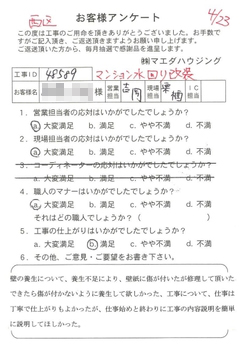 施工 五日市店 施工箇所 マンション内装・キッチントイレ取替 守屋さんの女性目線の提案で思った以上のリフォームができ、大変満足しております。 |