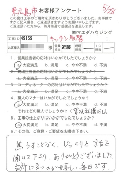 打ち合わせの時から親身になって丁寧に対応して頂きました。お世話になりました。 |
