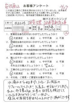 - 水まわりリフォームのお客様アンケート