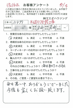 施工 府中店 施工箇所 リビング・和室・洋室・トイレ改装工事 施工費用 約160万円 正木現場監督は、細かい所まで気を遣って戴き関心いたしました。 |