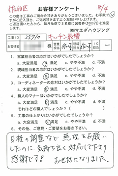 施工 五日市店 施工箇所 マンション改装工事 施工費用 約230万円 岩崎様には、たいへんお世話になりました。色々な相談にもとても快く対応していただいて、とても感謝しております。 |