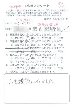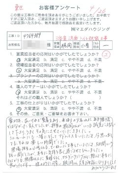 施工箇所 マンション水回り改装工事 アンケートのポストインが遅くなり、失礼致しました。 |