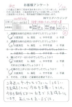 施工箇所 浴室トイレ改装工事 この度は大変お世話になりました。 |