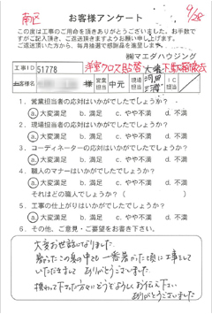 施工 府中店 施工箇所 LDK・玄関・階段等内装工事 お義父さんにも、いろいろ気を使って頂きありがとうございました。また何かありましたらよろしくお願いします。 |