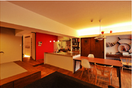 | 佐々木さん: | 和室スペースのことですね。収納を確保するために段差を付けましたが、空間にアクセントが加わり、結果的にすごく面白味のある空間になりましたよね。マンションだと、こういった共用部分の問題もでてきますが、それを踏まえたプランを考えたり、マイナス面を生かすことで逆にプラスの効果が出たりするのが面白いところです。物件選びの時は気づかない問題があったとしても、プランニング次第でそれを生かすことは十分に可能なんですよね。 |
