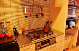 | 松永さん: | キッチンの壁はいつも情熱を忘れないように、赤にされたのですか?(笑) |