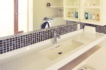 ![]() 洗面下にモザイクタイル |