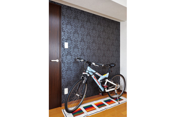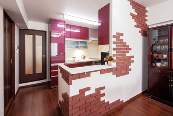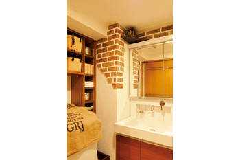 ![]() レンガタイルで壁にアクセントを |