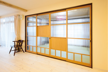 ![]() アンティークガラスの建具窓取り付け |