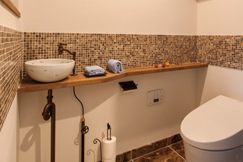 ![]() 洗面ボウルと足場カウンター |