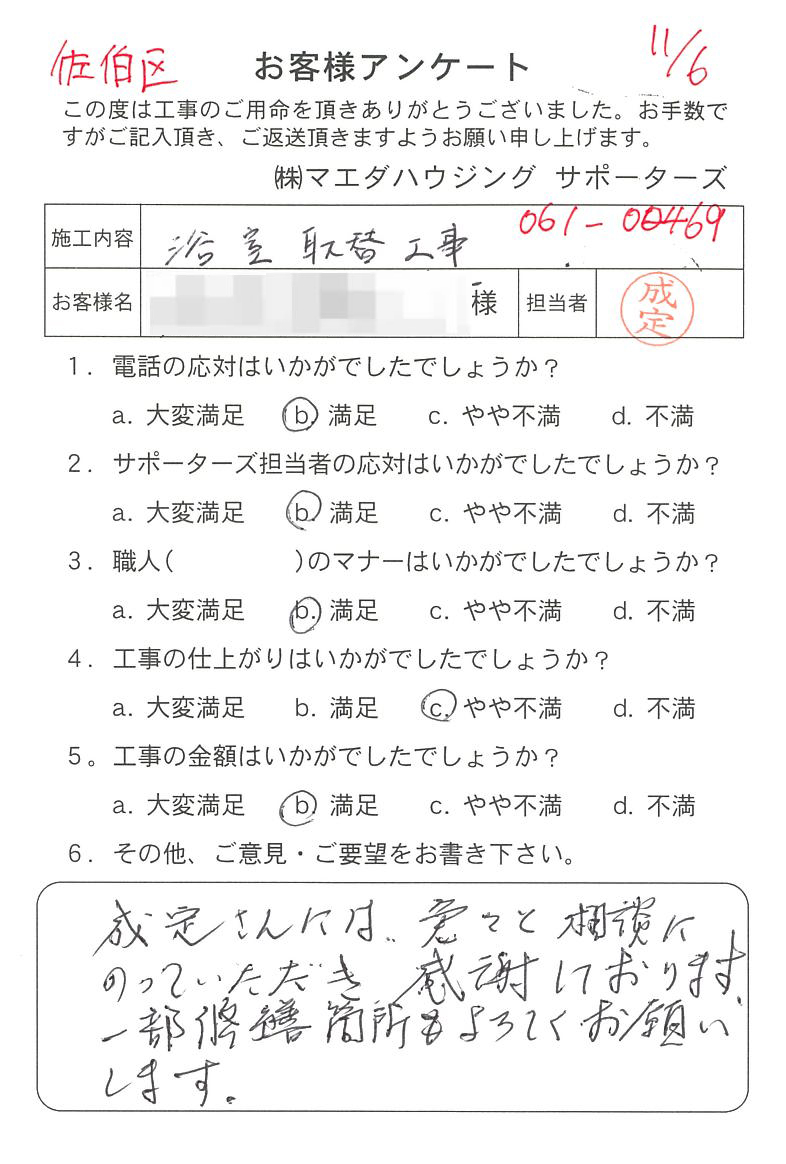 成定さんには、色々と相談にのっていただき感謝しております。一部修繕箇所もよろしくお願いします。