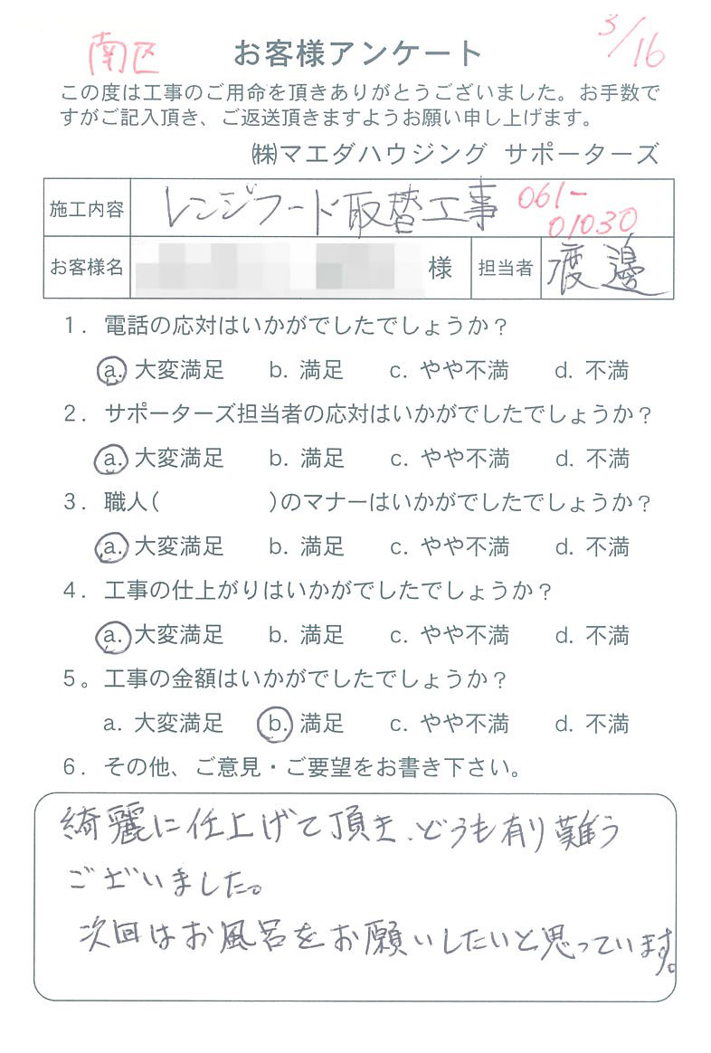 綺麗に仕上げて頂き、どうも有り難うございました。