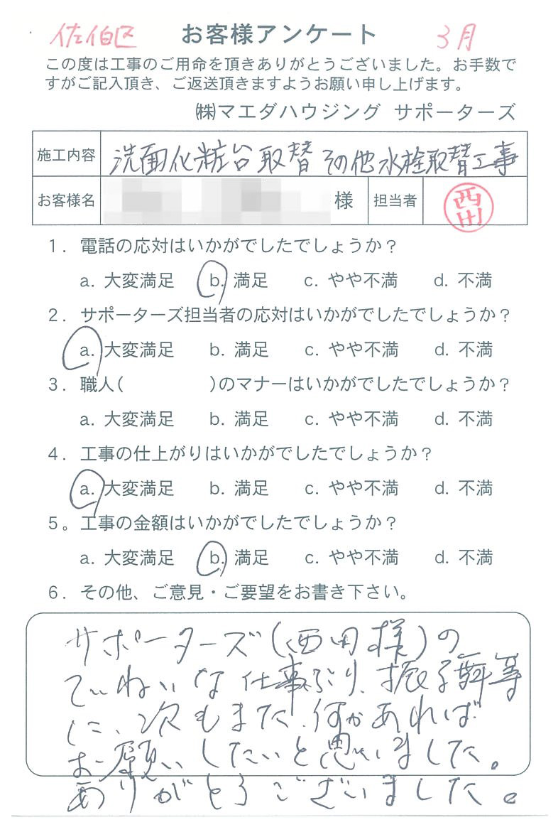 佐伯区 洗面化粧台取替 その他水栓取替工事