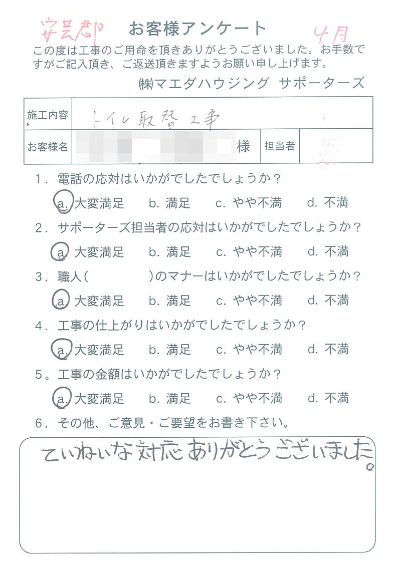 ていねいな対応ありがとうございました。