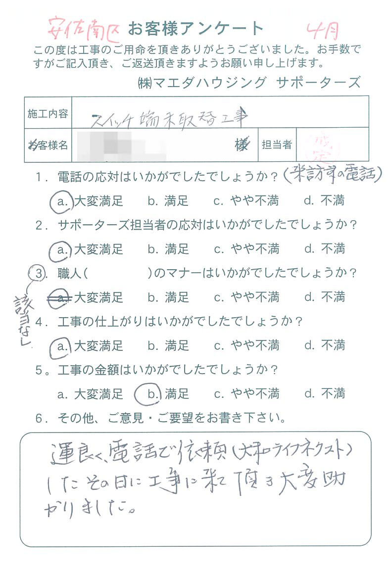 安佐南区 スイッチ端末取替工事