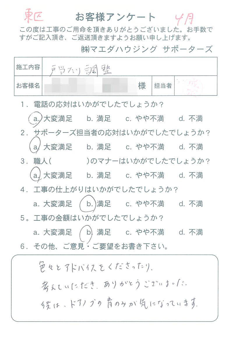 戸当たり調整