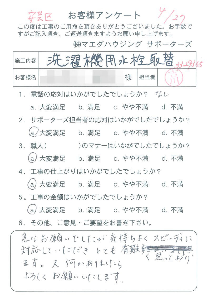 洗濯機用水栓取替