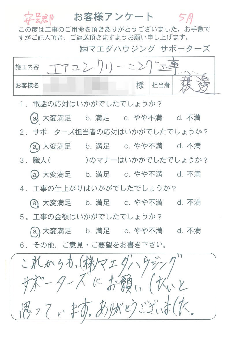 これからも、(株)マエダハウジングサポーターズにお願いしたいと思っています。ありがとうございました。