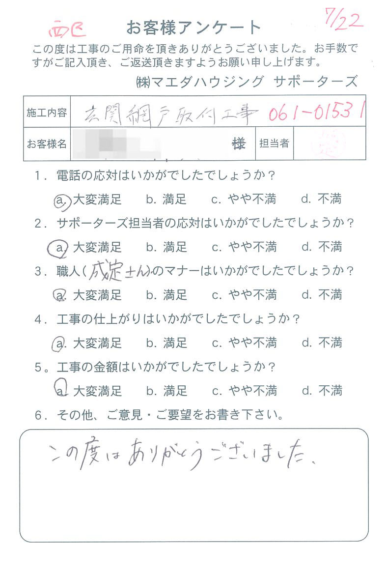 西区 玄関網戸取付工事