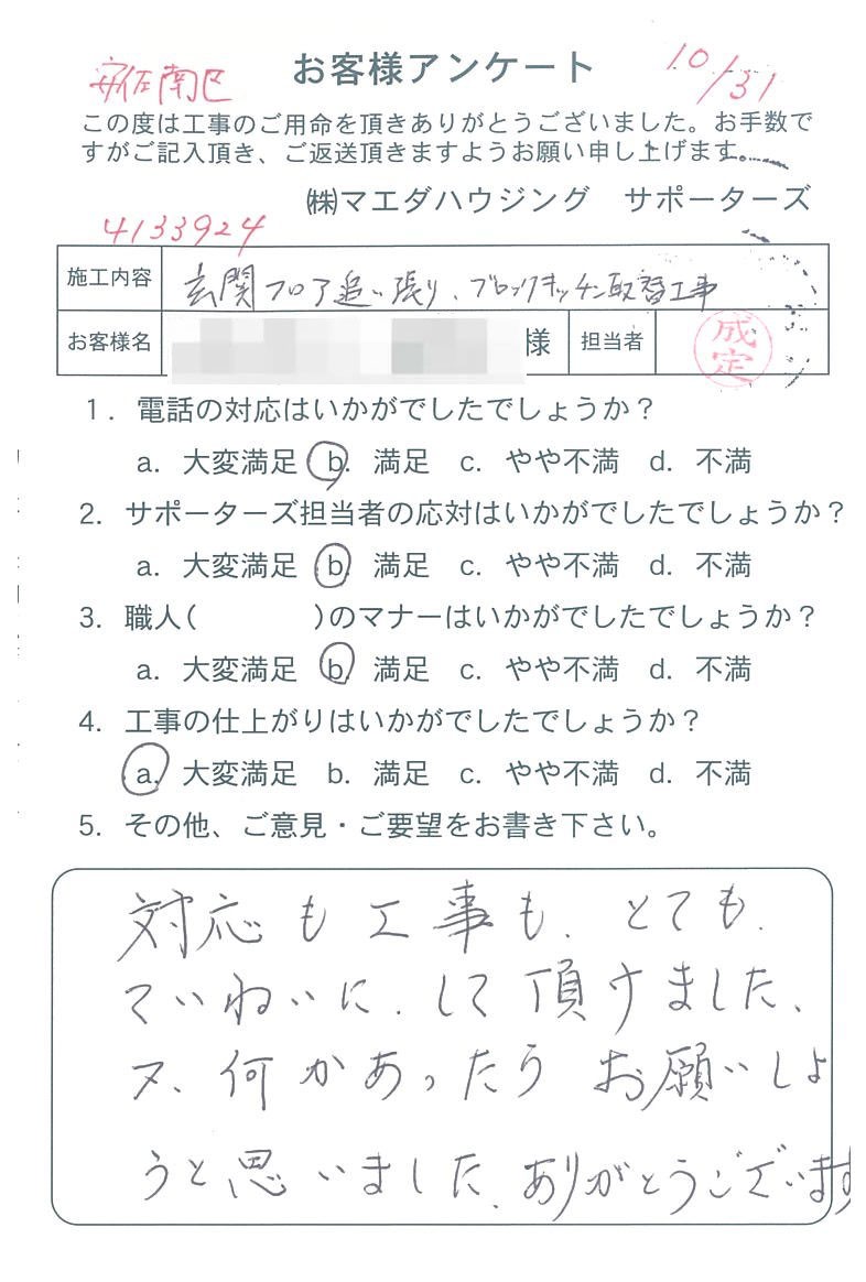 安佐南区 玄関フロア追い張り、ブロックキッチン取替工事