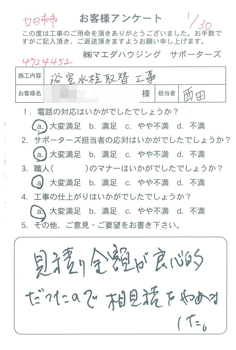 見積り金額が良心的だったので相見積をやめました。