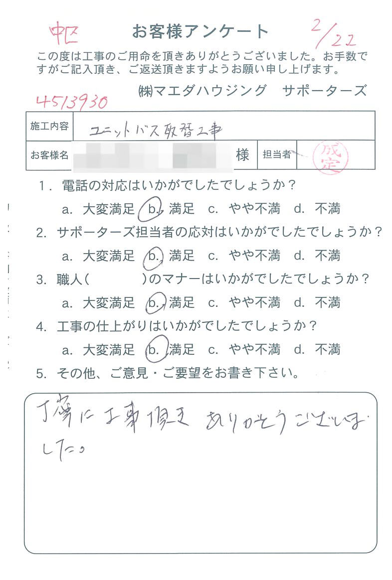 丁寧に工事頂きありがとうございました。