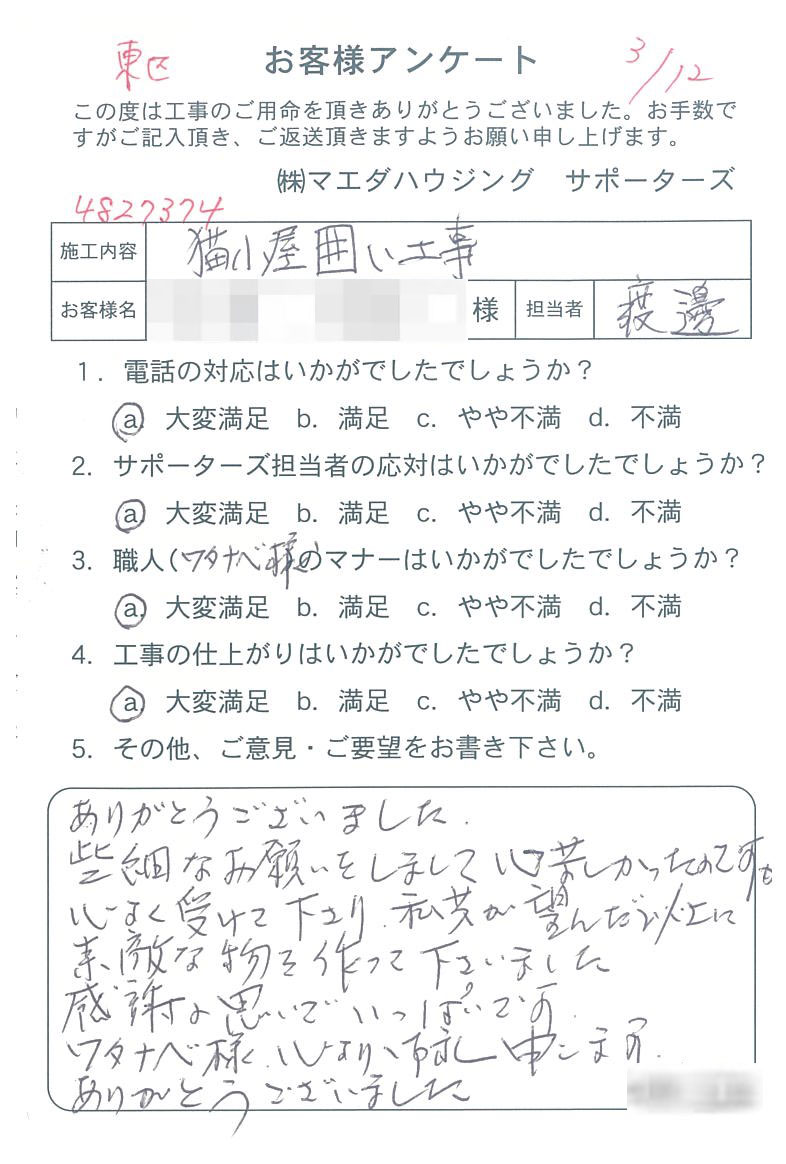 ありがとうございました。些細なお願いをしまして心苦しかったですが、心よく受けて下さり、私共が望んだ以上に素敵な物を作って下さいました。感謝の思いでいっぱいです。ワタナベ様、心より御礼申上げます。ありがとうございました。