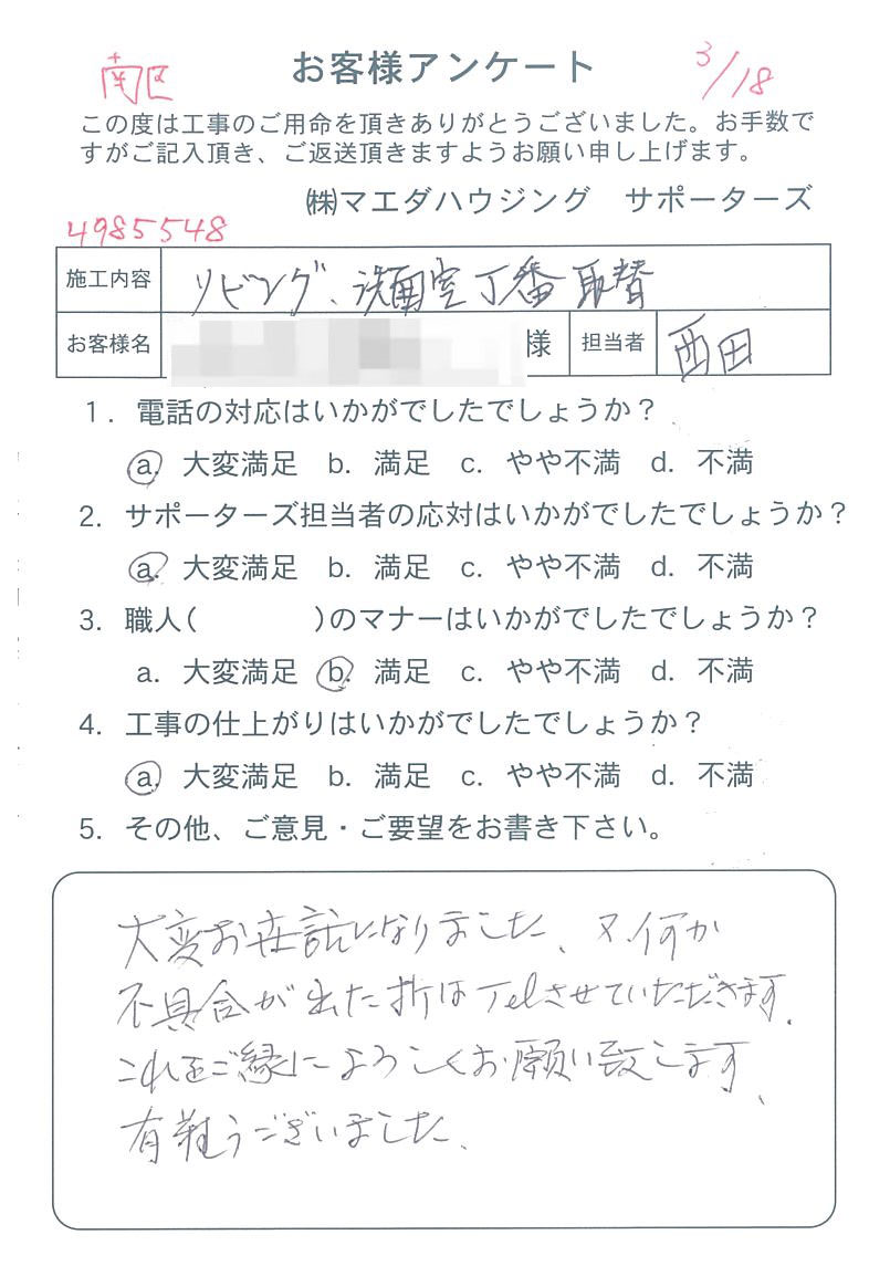 大変お世話になりました。又何か不具合が出た折はTelさせていただきます。これをご縁によろしくお願い致します。有難うございました。