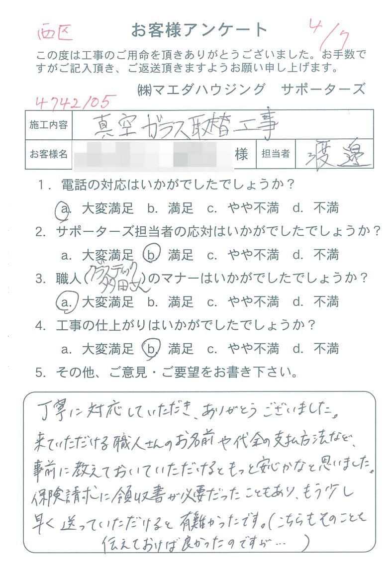 - 西区 真空ガラス取替工事