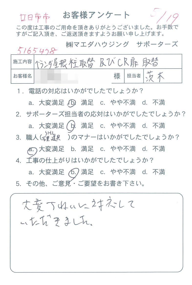 廿日市市 ベランダ屋根柱取替及びCR扉取替