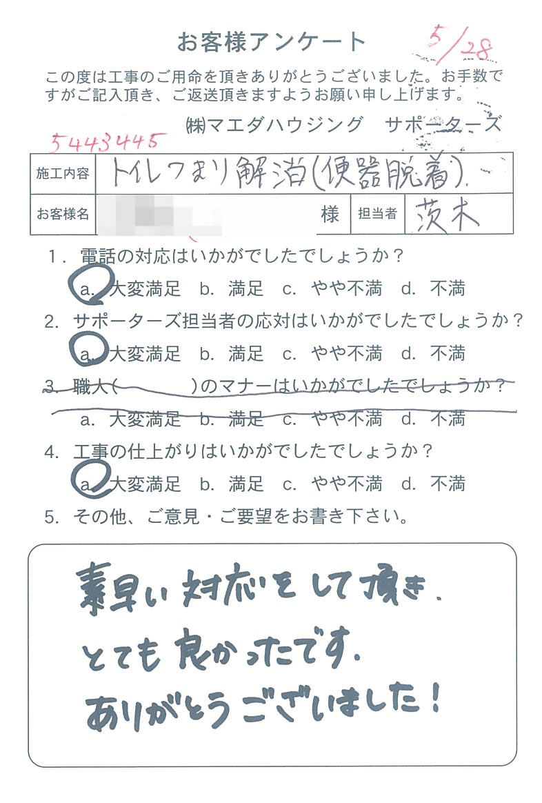 トイレつまり解消(便器脱着)